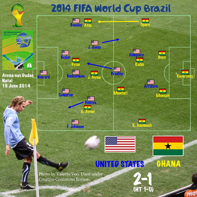 The US team pulled off yet another distinctly American win, this time against their arch-rivals in a game played predominantly down the flanks. German-born players played a critical role for the US (though Kevin Prince Boateng did his part for Ghana as well), while the full-backs were the key figures for Ghana.