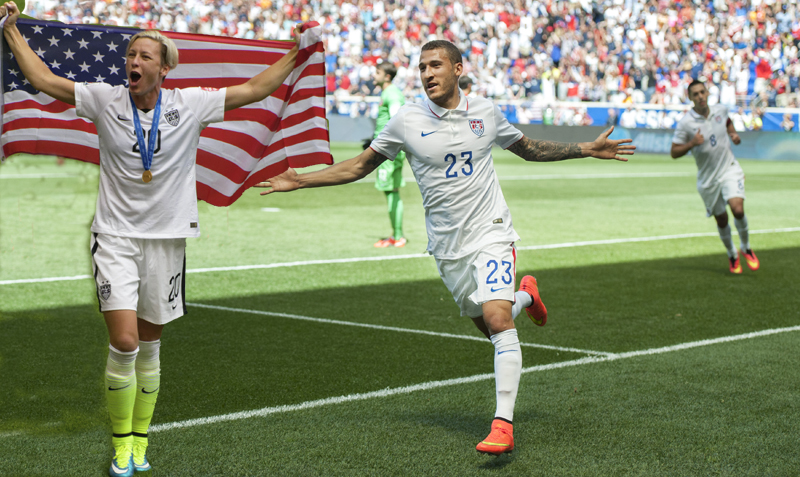 The real irony is that the 2015 Women’s World Cup, with its expanded field of 24 teams, was such a success precisely because of the kind of “foreign players” Wambach lamented in the Men’s team–but in reverse. 2015 could fairly be described as the tournament Title IX created. A striking percentage of the players in the tournament developed their skills, at least in part, at US universities. Though some of these were simply foreign students taking advantage of US scholarship opportunities, many grew up in the US with dual citizenship. Central and South American teams are particularly indebted to dual American citizenship–10 of Mexico’s 23 squad members are US born. But they are not alone: England’s goalkeeper, Karen Bardsley, was born and raised in Santa Monica, playing for Cal State Fullerton.