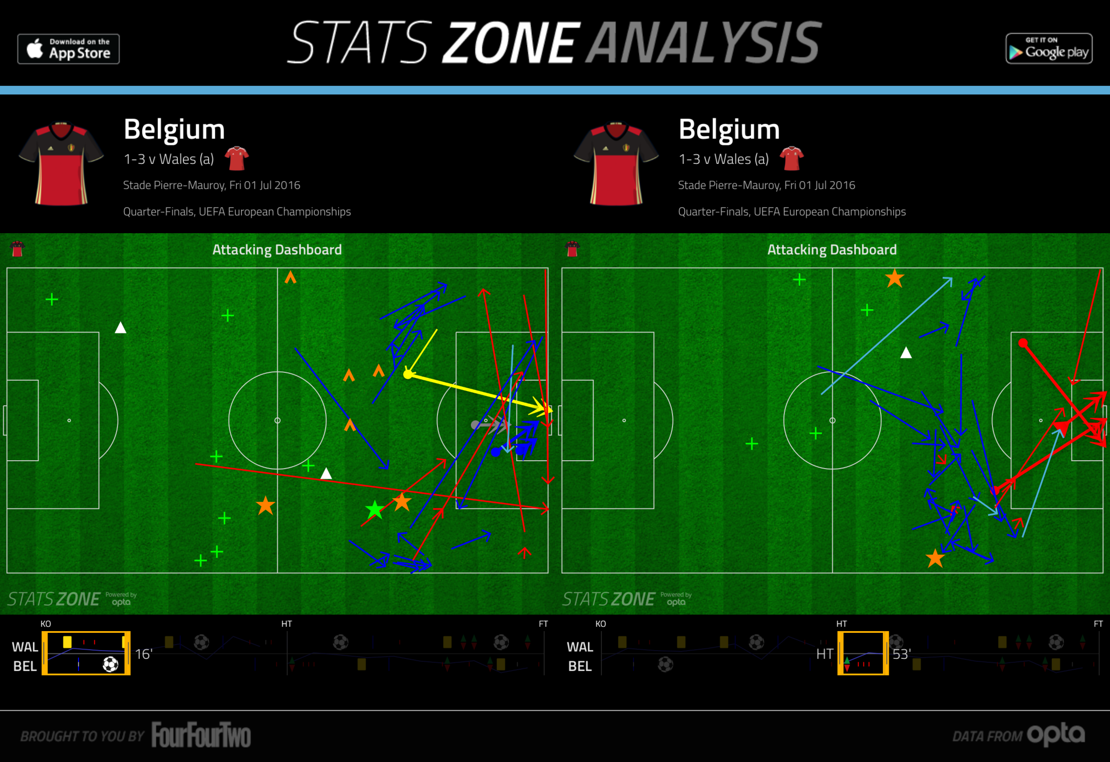 Belgium had a similar spell of threatening possession to start the second half, and a longer spell in control once they were trailing Wales from roughly 74′-82′ (Belgium had 58% 2nd half possession overall).