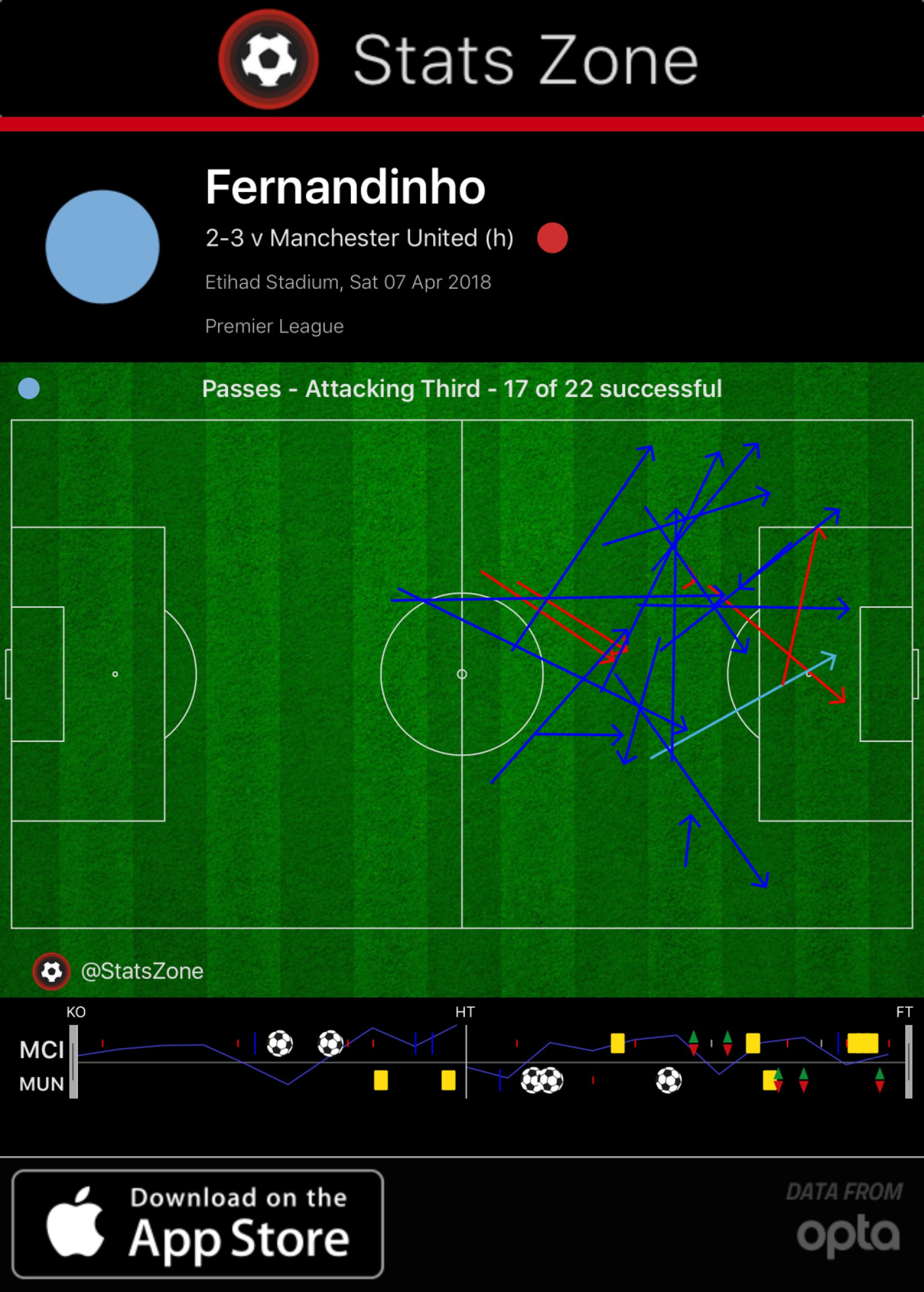 Deserving of some comment, even in defeat, is Fernandinho’s impressive midfield display. In De Bruyne’s absence, it was Fernandinho who became City’s most impressive play-maker despite his deep-lying role. His passes in the attacking third were stunningly accurate given their average length. Danny Murphy was right to devote his Match of the Day analysis segment to the Brazilian midfielder.