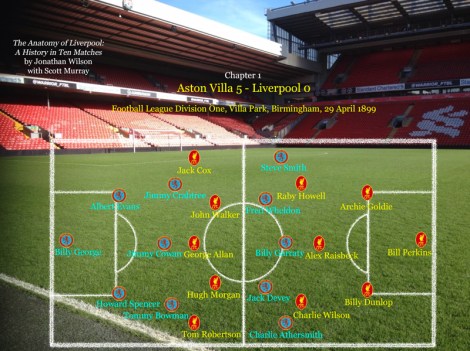 Really, the chapter is the story of Liverpool’s early development under their second manager, the great Tom Watson. He had arrived two seasons earlier from Sunderland, where he had assembled one of the great sides of the era, Sunderland’s Team of All Talents. This Liverpool team had a remarkable run, particularly after an indifferent first half of the season. They stormed through the second half and were first place heading into their final game against second place Aston Villa–until Villa won their game in hand 7-1, tying Liverpool on points and edging them in goal average by 0.02 (until the 1970s, goals scored were divided by goals conceded rather than the latter being subtracted from the former as the tie breaker for teams on level points).