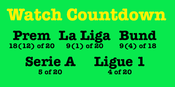 It seems a little crazy to link the weekends before and after the international break in a single post, but that’s how I’m rolling. Before the break, I was mostly at the bottom of the tables in both La Liga and the Premier League, while my return from the international break saw me returning to the Premier League sides I watched two weekends previously (including an Arsenal team that is decidedly NOT bottom of the table) plus a touch of Serie A. These will mostly be quick summaries, just to mark where I’ve been.