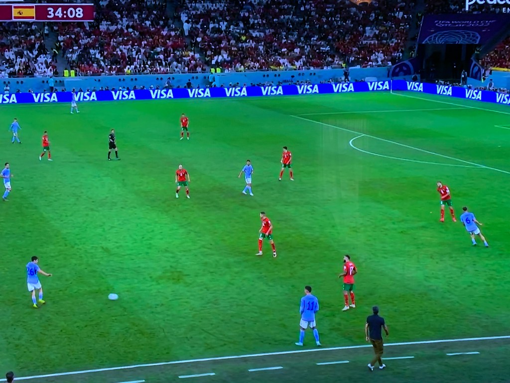 There was some speculation that Spain were happy enough to allow Japan to take first in their group, but if so it was almost certainly a miscalculation. Morocco’s defensive prowess had been demonstrated in the group stage, and against both Croatia and Belgium (particularly the former) they had demonstrated their effectiveness at frustrating possession-oriented opponents like Spain. Moreover, the overwhelming crowd support for the Atlas Lions made this encounter a genuine home game.